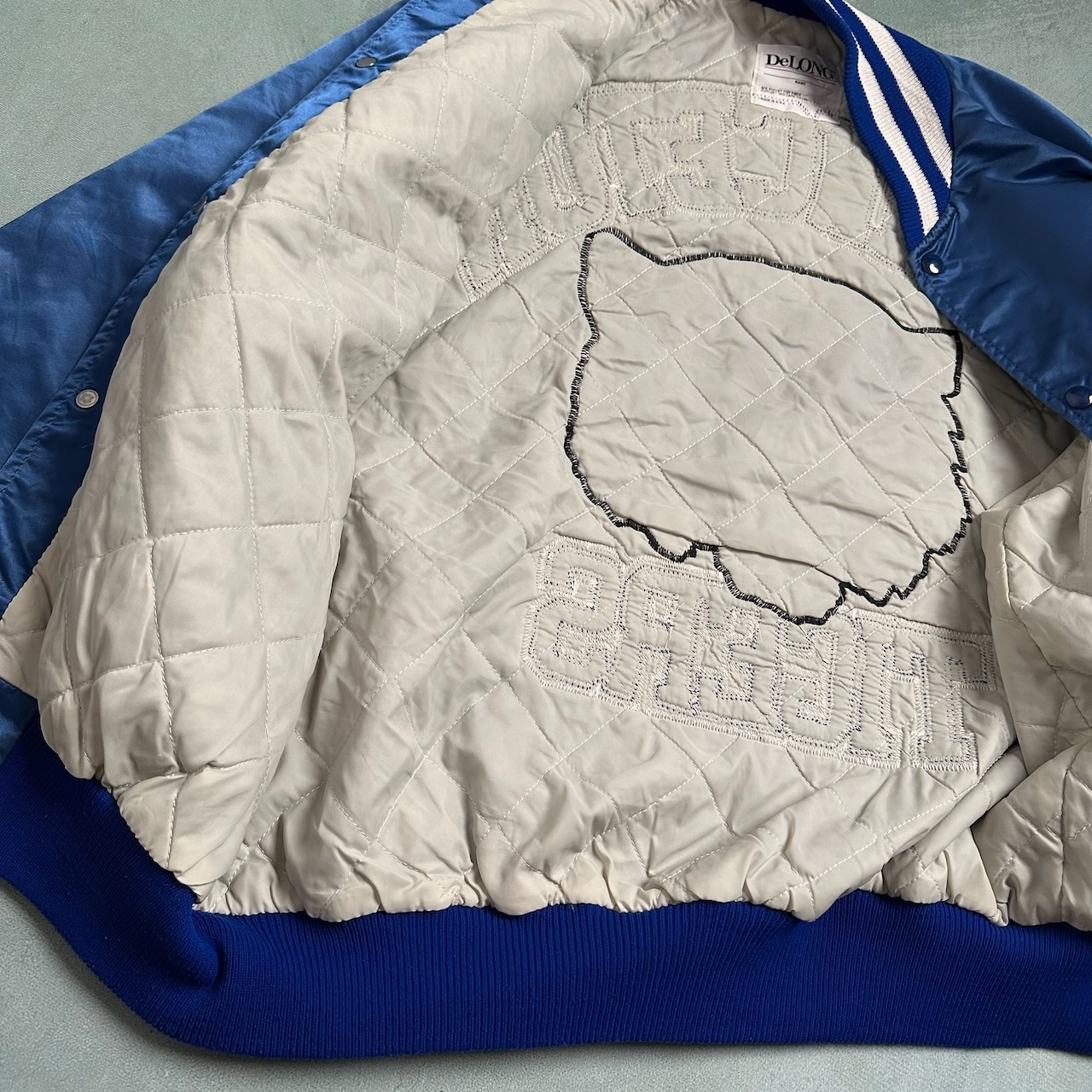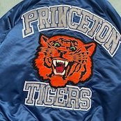 90s USA DeLONG 阪神 & PRINCETON 虎 スタジャン サテン ナイロン ジャケット ブルー L 古着
