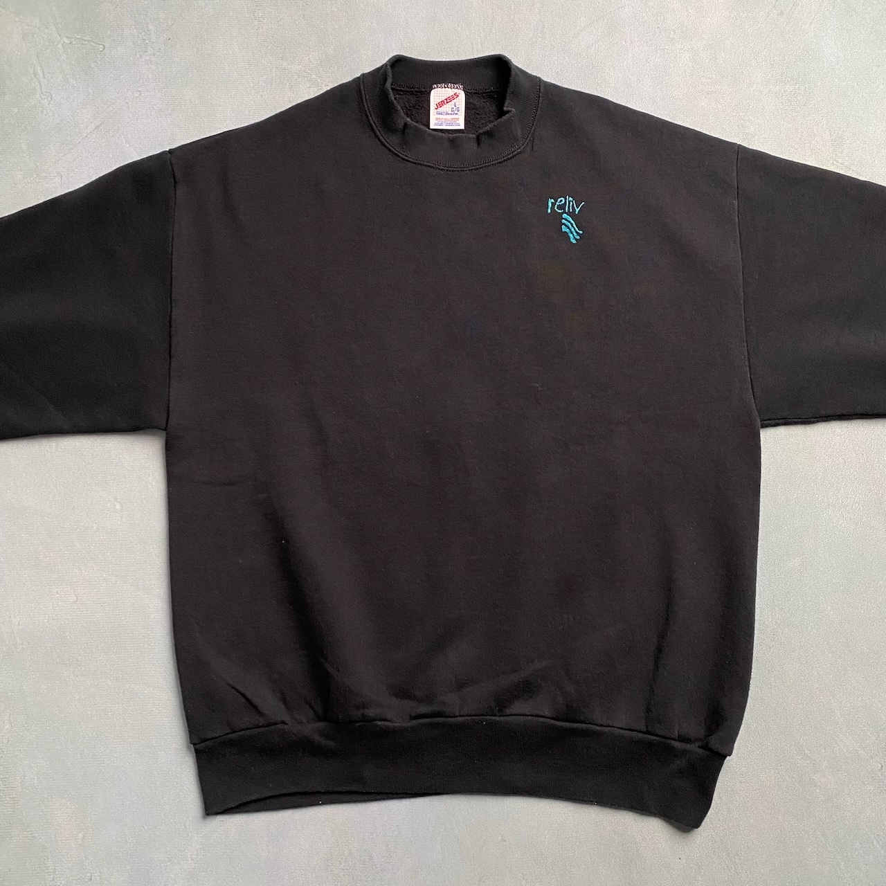 80s~90s USA JERZEES ワンポイント スウェット トレーナー ジャージーズ ブラック L 古着